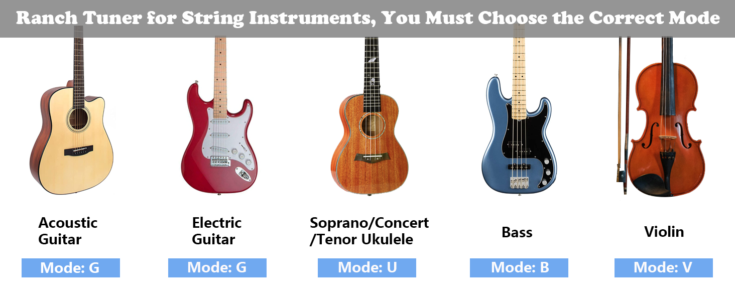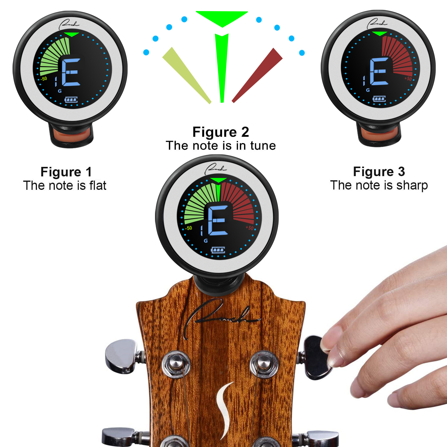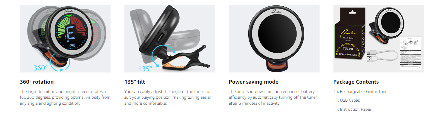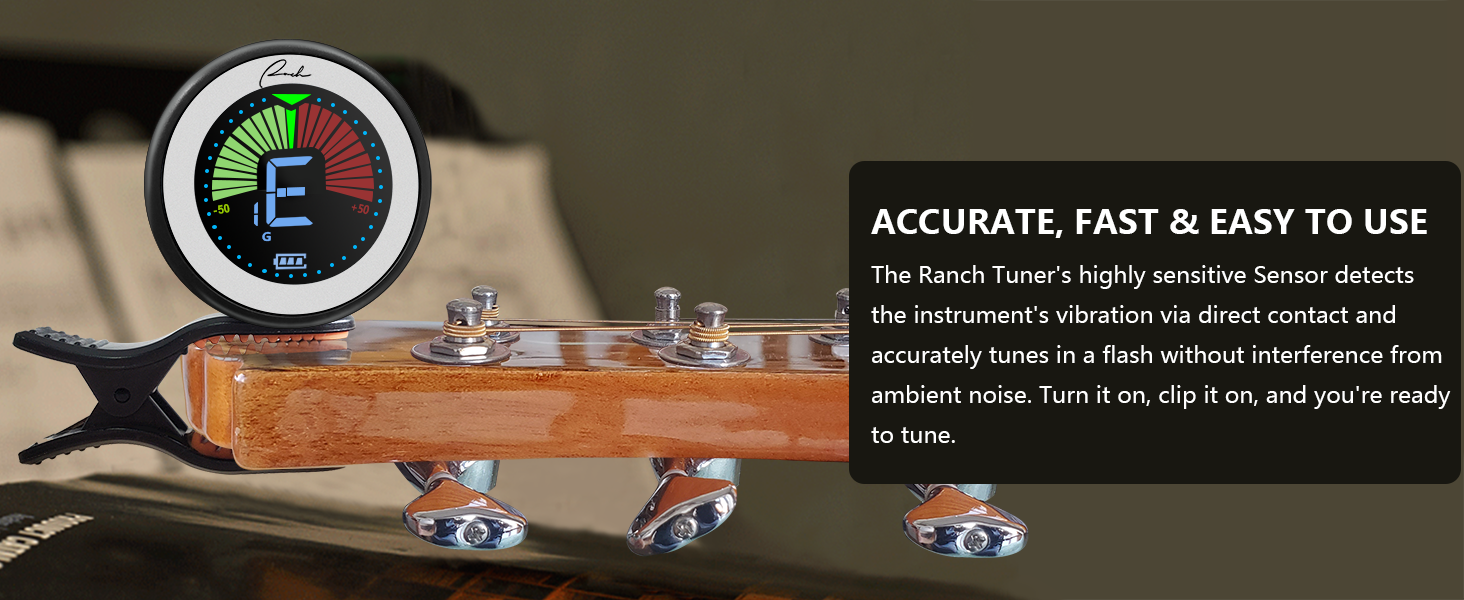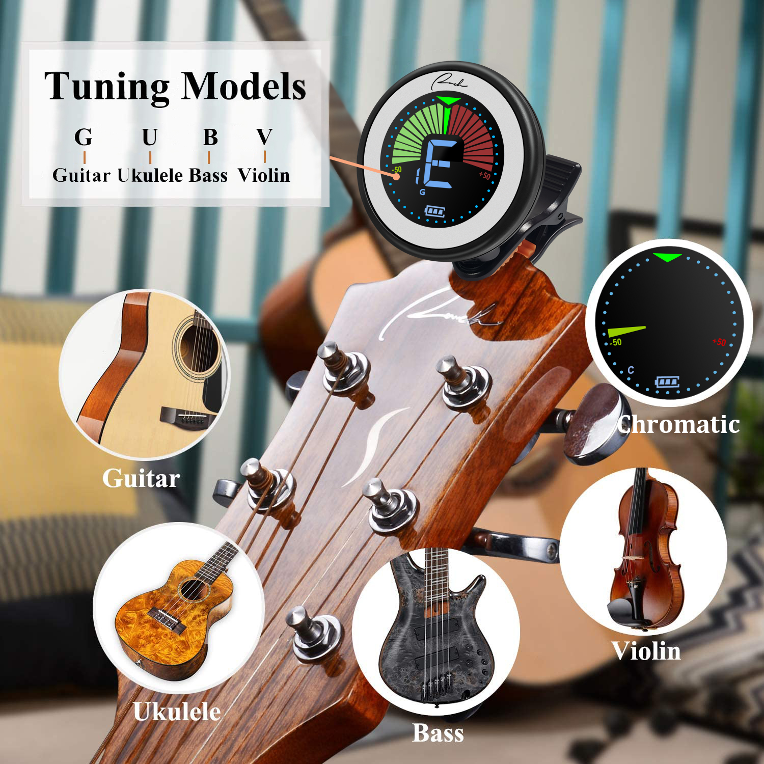 Ranch Rechargeable Guitar Tuner Clip On for Acoustic/Electric Guitar, Ukulele, Violin, Bass and Chromatic Tuning Modes – Black