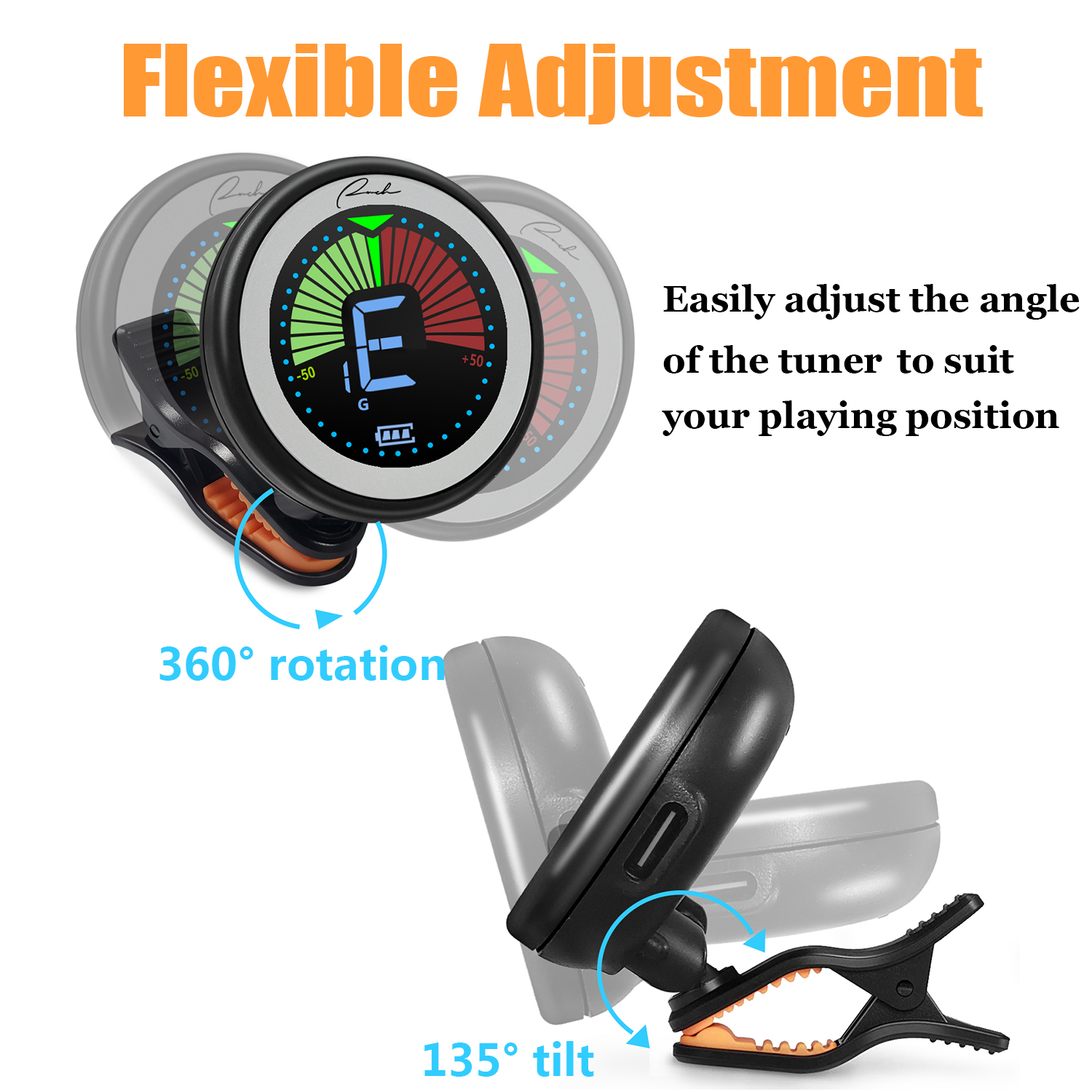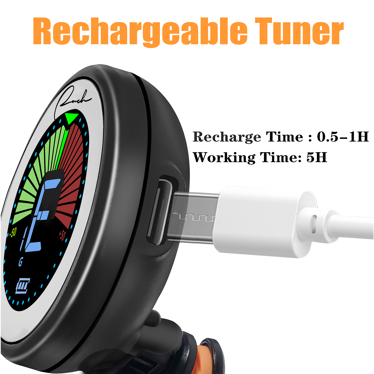 ★ Rechargeable Convenience: Instead of relying on disposable batteries, the guitar tuner can be easily recharged via included USB cable. With its rechargeable design, you never have to worry about running out of battery power or having to constantly replace batteries