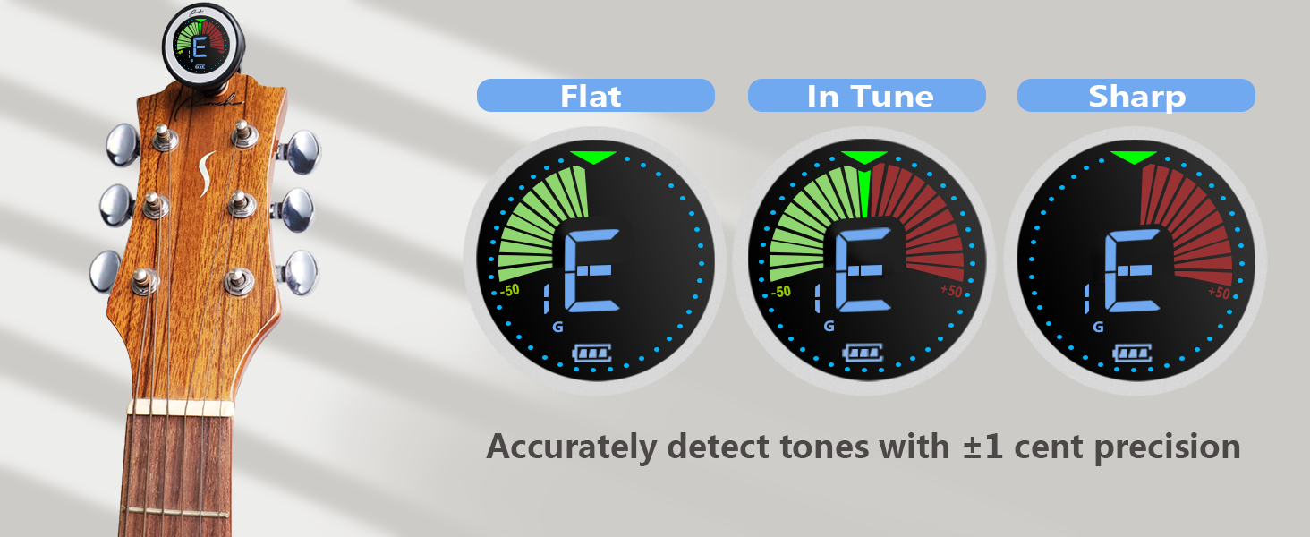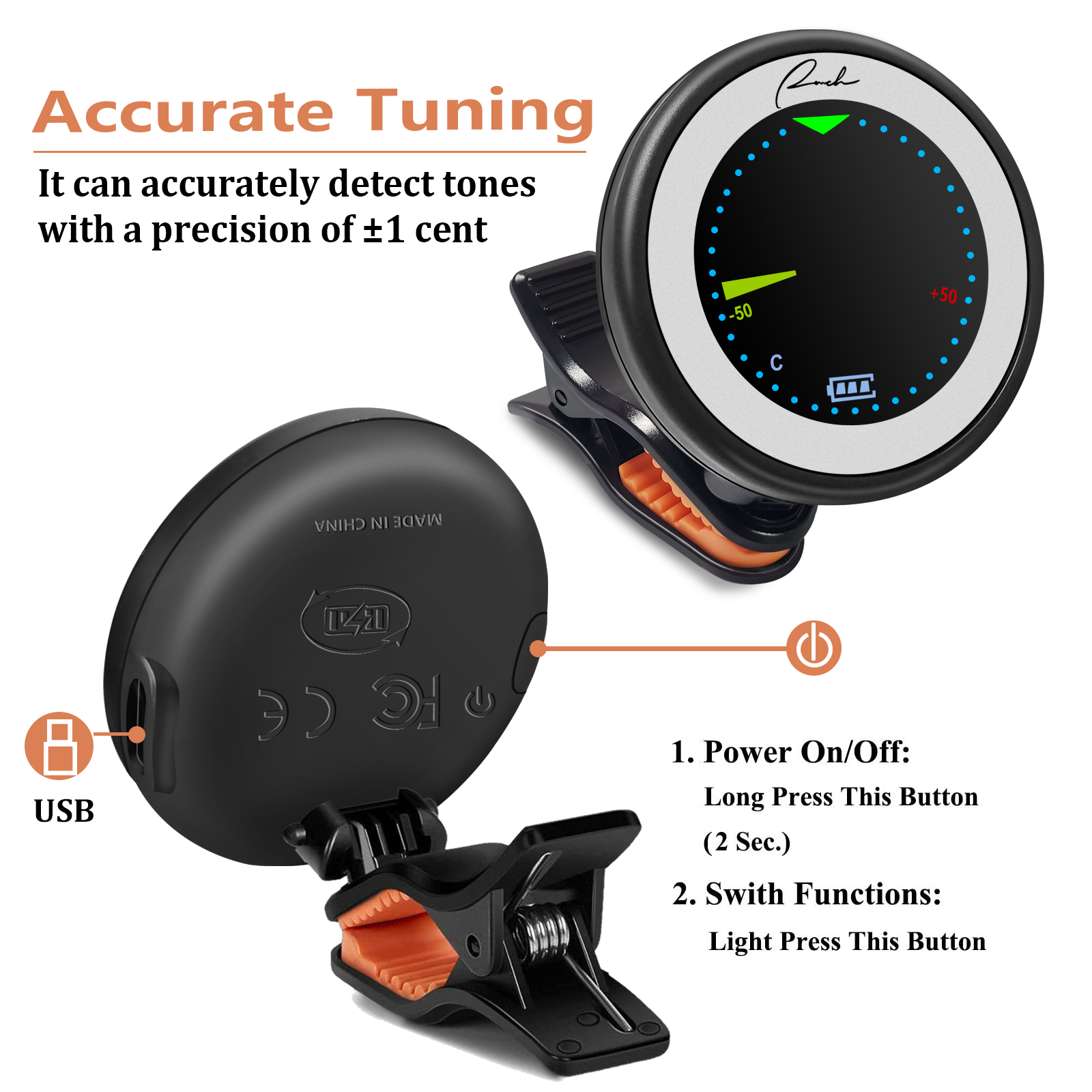★ Accurate Tuning: The rechargeable guitar tuner features advanced signal processing that allows for ultra-fast and highly accurate tuning. It can accurately detect tones with a precision of plus or minus 1 cent, ensuring that you always have optimal pitch detection