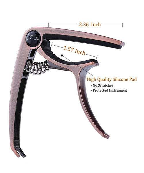 – The Guitar Capo is made from durable metal with a stainless steel spring that gives a strong grip, easy and fast releasing or re-positioning without disturbing the tune of the music.