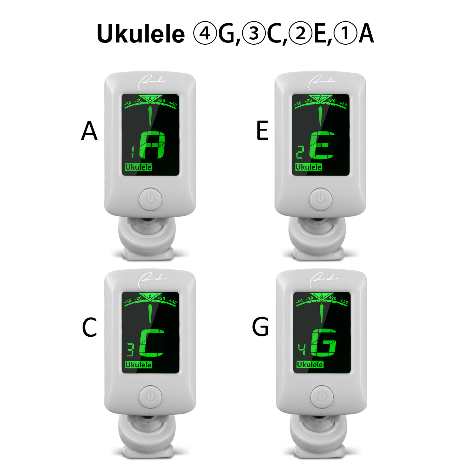 The little letters at the bottom: C, G, V, B, Uc, Ud are tuning mode for you to choose. C mode is Chromatic, able to tune most of string instruments, such as Baritone Ukulele, Guitalele and instruments mentioned below; G mode is specially for tuning guitar; V mode is specially for tuning violin; B mode is for tuning 6-string banjo; Uc mode is specially for tuning C key 21''/23''/26'' ukulele while Ud mode is specially for tuning D key 21''/23''/26'' ukulele. If your uke is Baritone, please choose C mode.