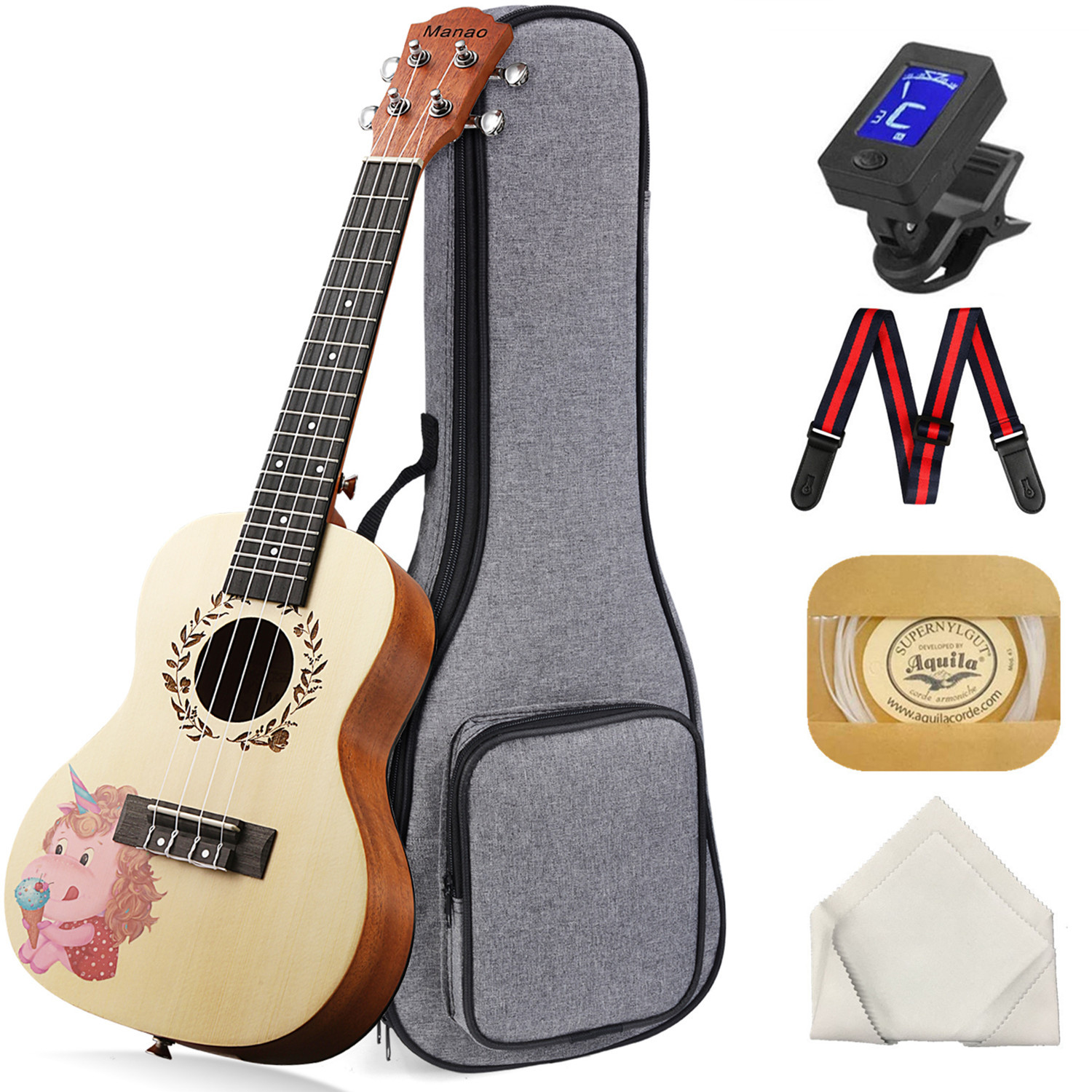Manao Concert Ukulele 23 Inch Unicorn Print Professional Beginners Instrument Kit
