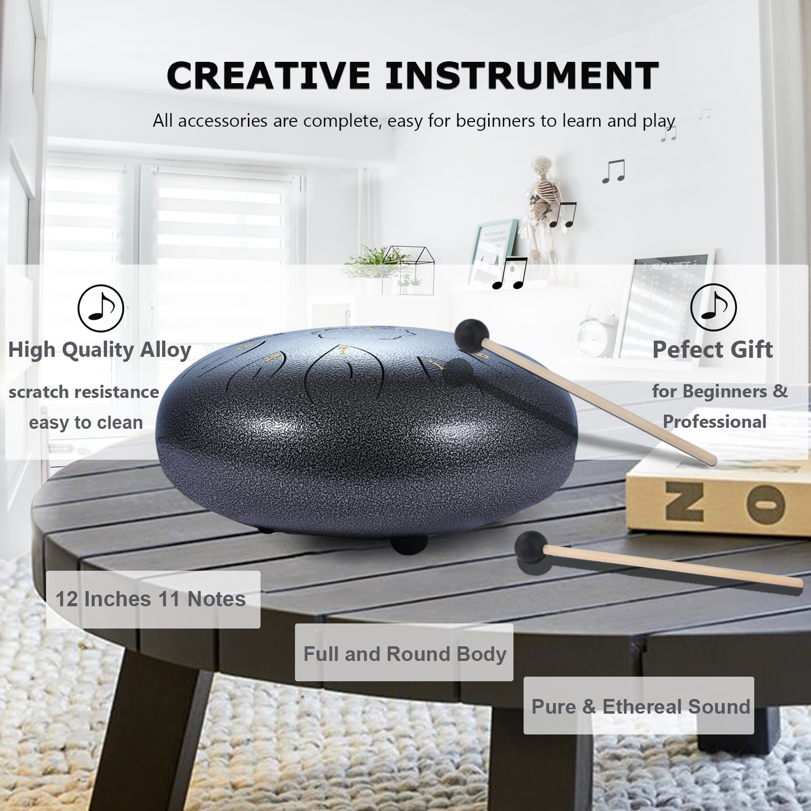 Ranch Steel Tongue Drum Kit 12 Inches 11 Notes Handpan Drum C Key Hand Drum for Beginners – Glossy