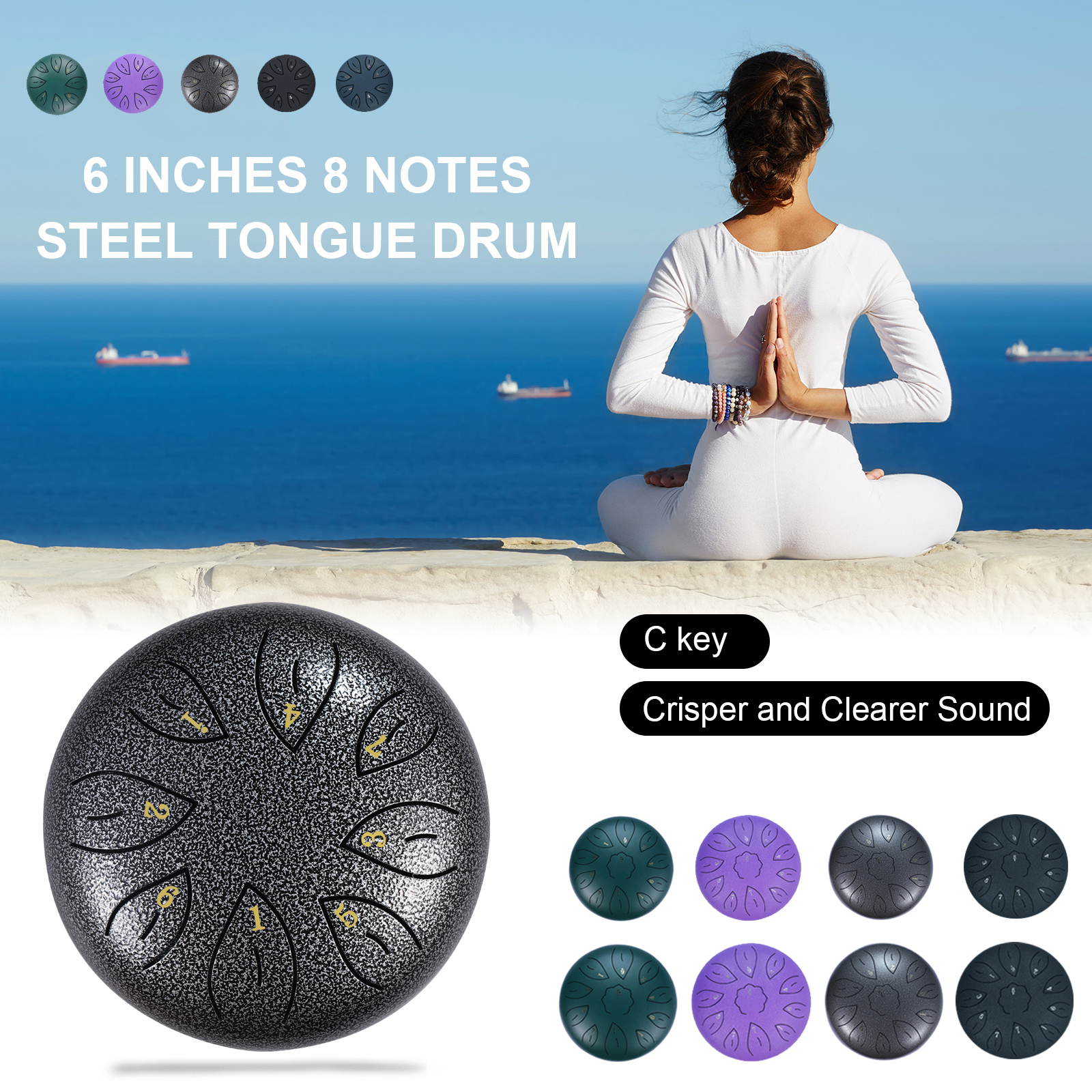 ♬【Premium Material & Exquisite Craft】Being made of high-quality alloys, with a full and round drum body which is strictly modulated and accurately cut by hand by artisans, Ranch tongue drum is endowed with beautiful, pure and ethereal sound. Besides, the tough and non-corrosive coating can prevent it from rust, abrasion and scratches. The timbre of 6 inches metal drum is clear and crisp.