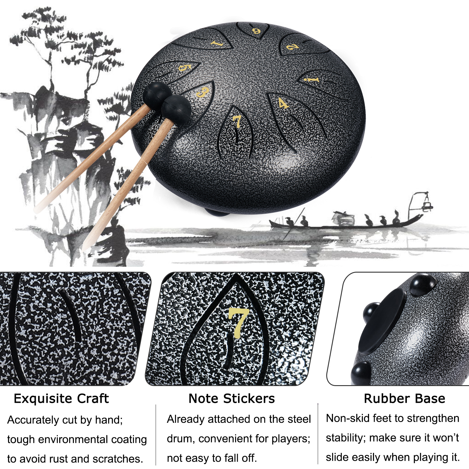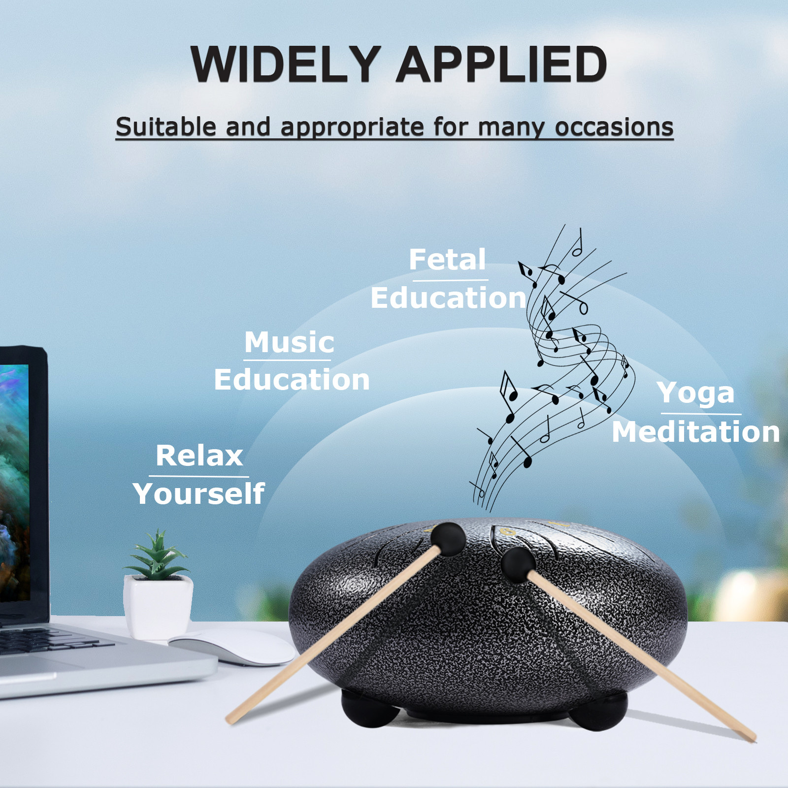♬【Relaxation & Stress Relief】The steel pan drum is also called Zen sound instrument. With long and ethereal sound, the zen drum is able to purify your mind and soul, making you achieve inner peace. The sounds come out of the ethereal drum are so soothing and relaxing that enable you to easily forget about your troubles while playing, and achieve a good spirit.
