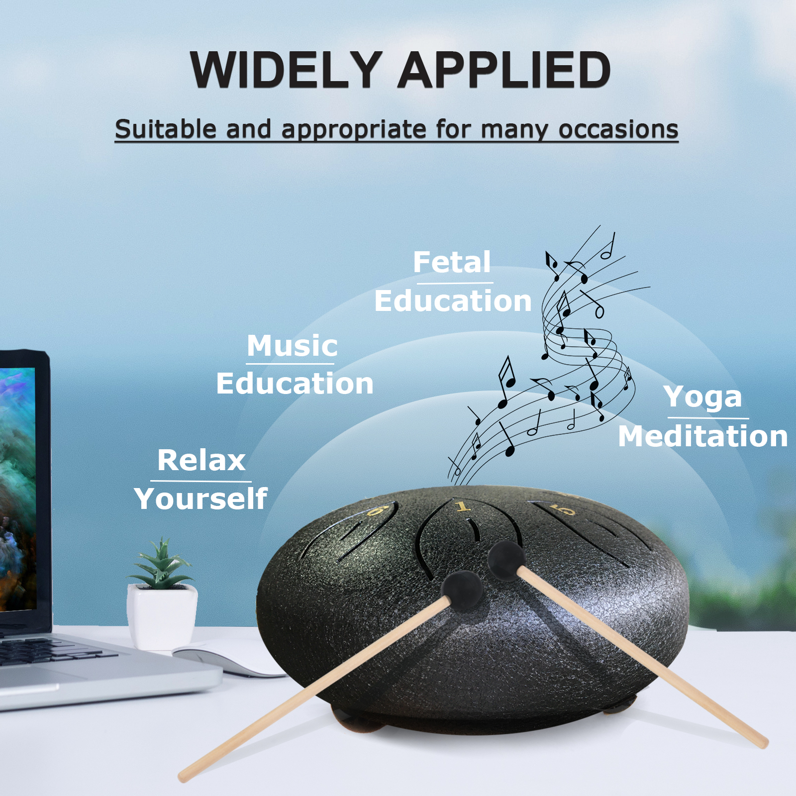 ♬【Relaxation & Stress Relief】The steel pan drum is also called Zen sound instrument. With long and ethereal sound, the zen drum is able to purify your mind and soul, making you achieve inner peace. The sounds come out of the ethereal drum are so soothing and relaxing that enable you to easily forget about your troubles while playing, and achieve a good spirit.