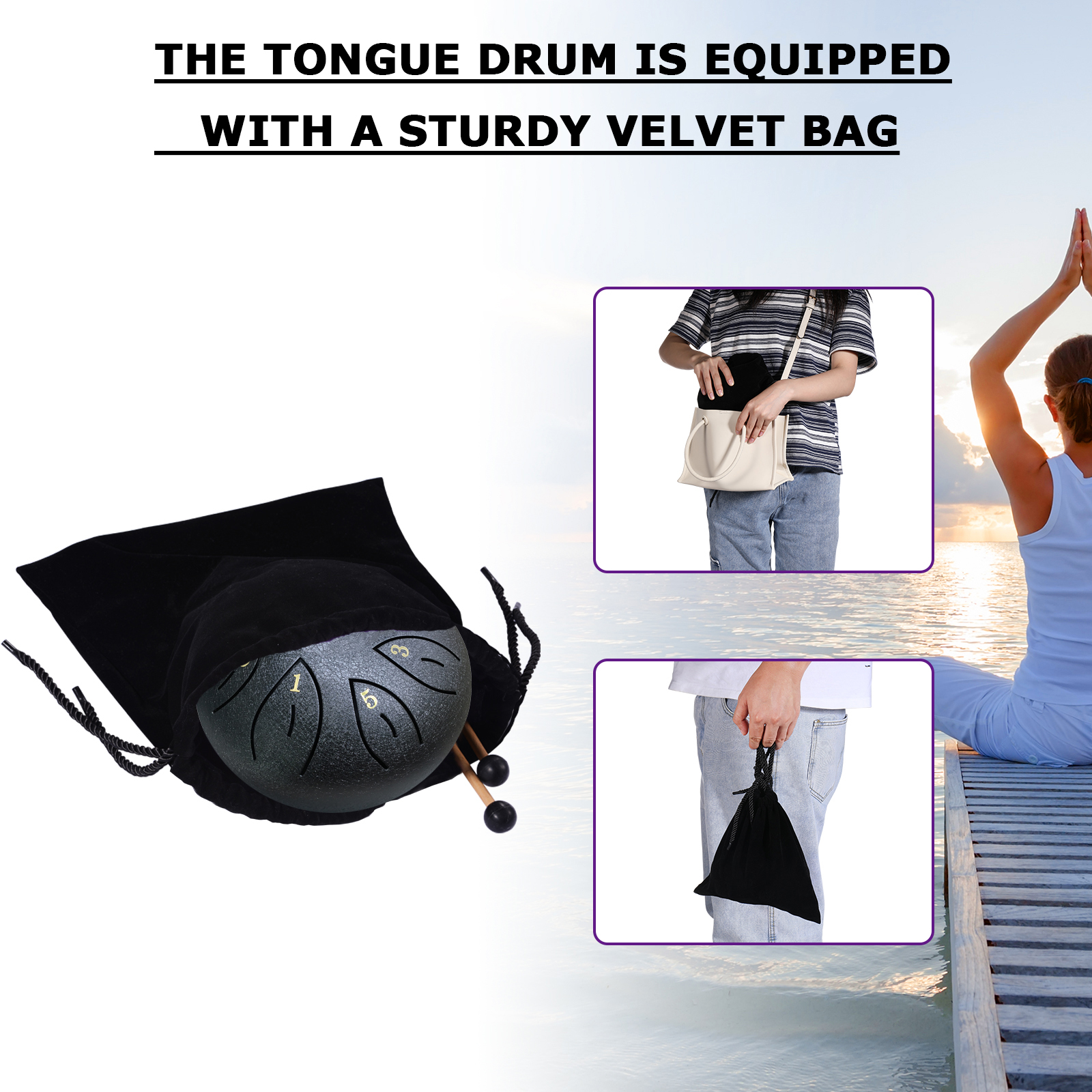 ♬【Widely Applied】The tongue drum is suitable for music education, yoga meditation, Zazen, performances, religious activities and fetal education etc. It is also appropriate for many other occasions, such as friends and relatives gathering, outing and travel etc. This steel drum is really a great Christmas/Thanksgiving/Birthday Gift for your family, your friends, or yourself.