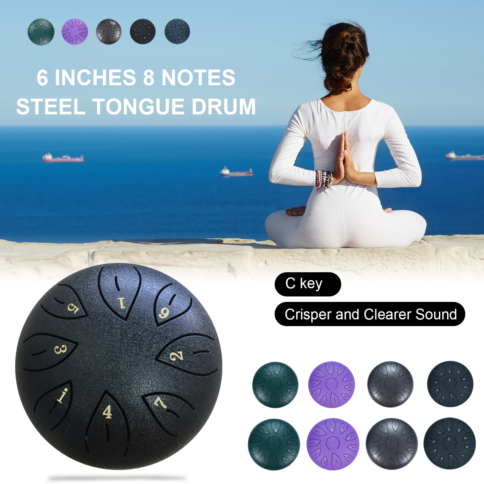 ♬【Premium Material & Exquisite Craft】Being made of high-quality alloys, with a full and round drum body which is strictly modulated and accurately cut by hand by artisans, Ranch tongue drum is endowed with beautiful, pure and ethereal sound. Besides, the tough and non-corrosive coating can prevent it from rust, abrasion and scratches. The timbre of 6 inches metal drum is clear and crisp.