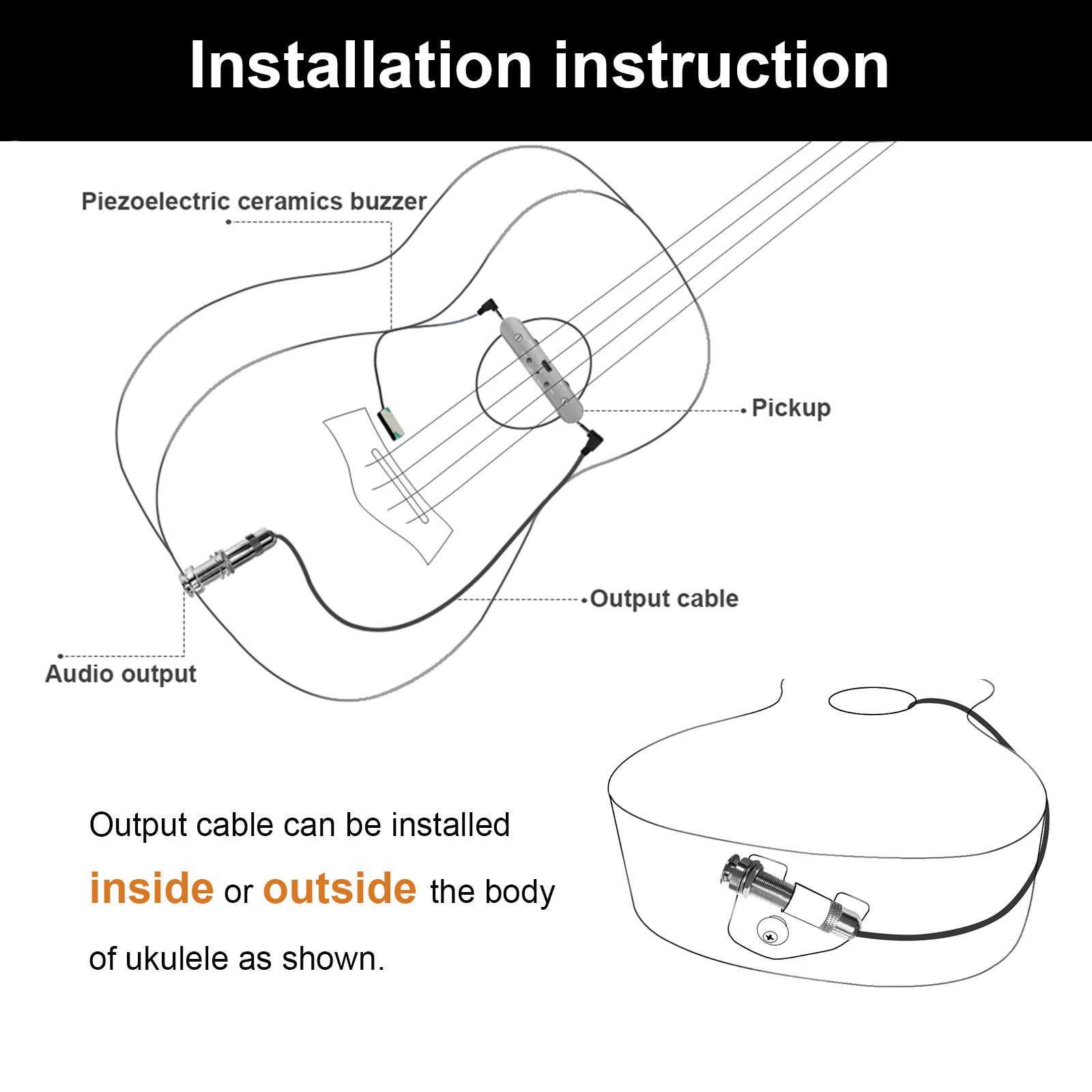 ★ Piezoelectric Dual-System – Piezoelectric ceramics buzzer of the pickup for ukulele helps to highly reproduce the audio, avoiding external interference and making the sound with higher sensitivity.