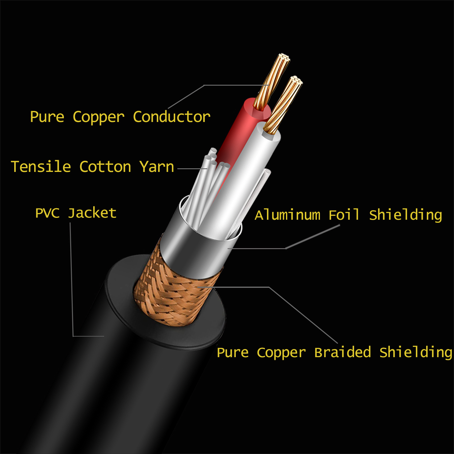 ♬ Double Shields to Reduce Interference – Pure copper braided shield and aluminum foil shield reduce unwanted noise interference, minimizing the risk of audio dropouts and signal degradation for a superior listening experience.