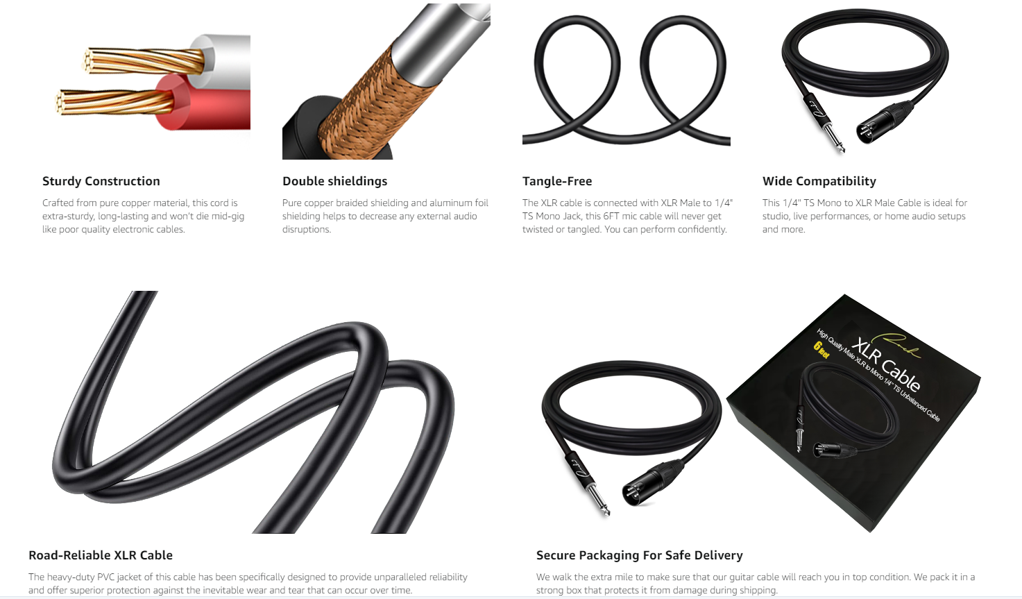 ♬ Easy To Clean & Durable – Unlike nylon braided cables that can be difficult to clean, this flexible male XLR to 1/4 cable with PVC jacket can be easily wiped clean with a damp cloth. The 6mm tenacious PVC jacket is also highly durable, providing excellent protection against wear and tear.