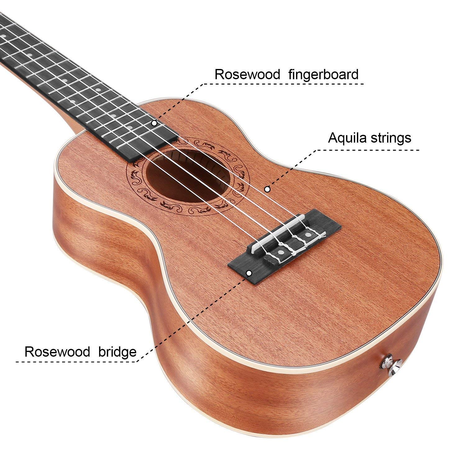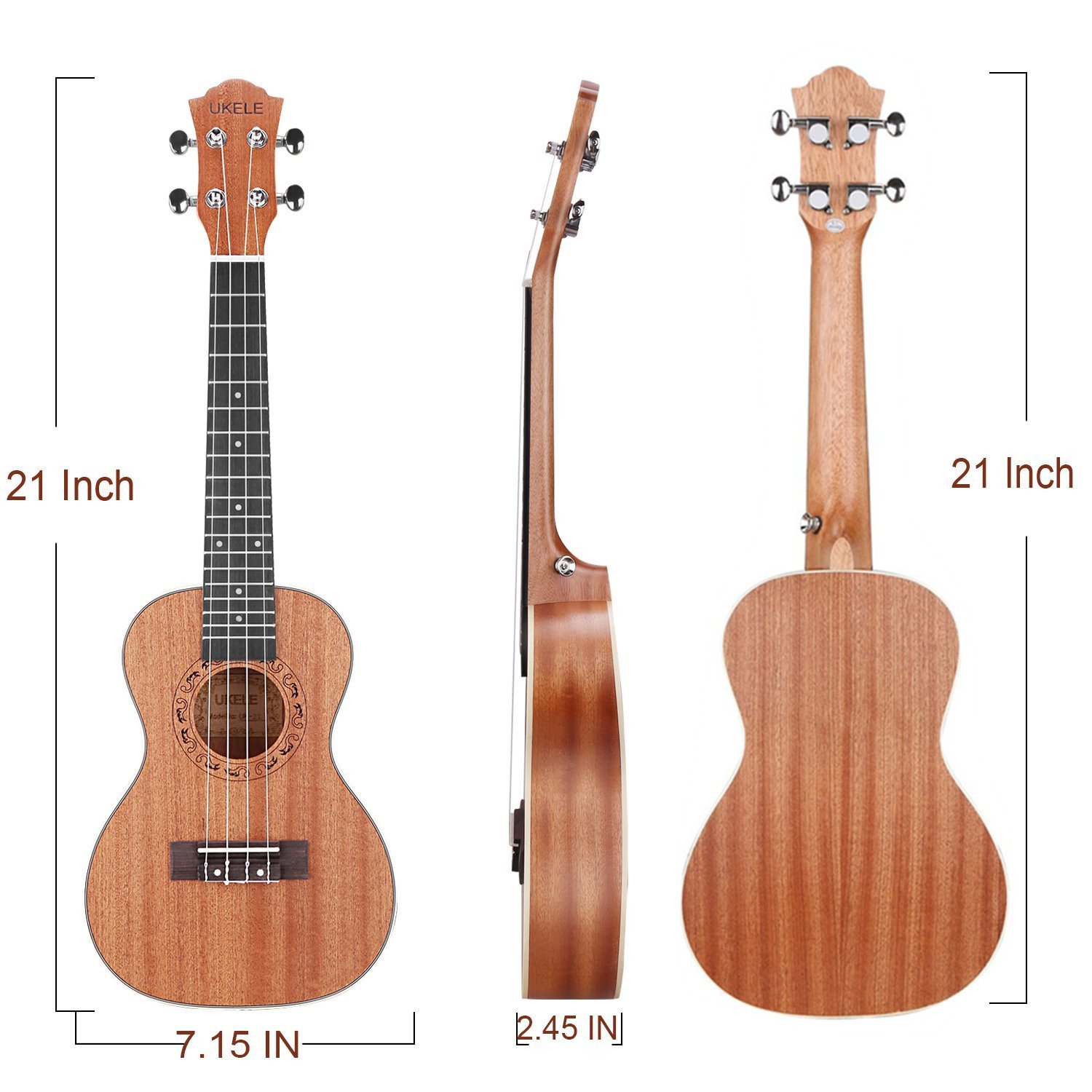21 INCH SOPRANO UKULELE: 21 inches long, Mahogany Top & Neck, Sapele Back & Sides, Rosewood Fingerboard, smooth fret wires to avoid scratch fingers. Sturdy construct and smooth touch to make sure you can roll over the frets freely on the Aquila strings whether playing chords or single notes.